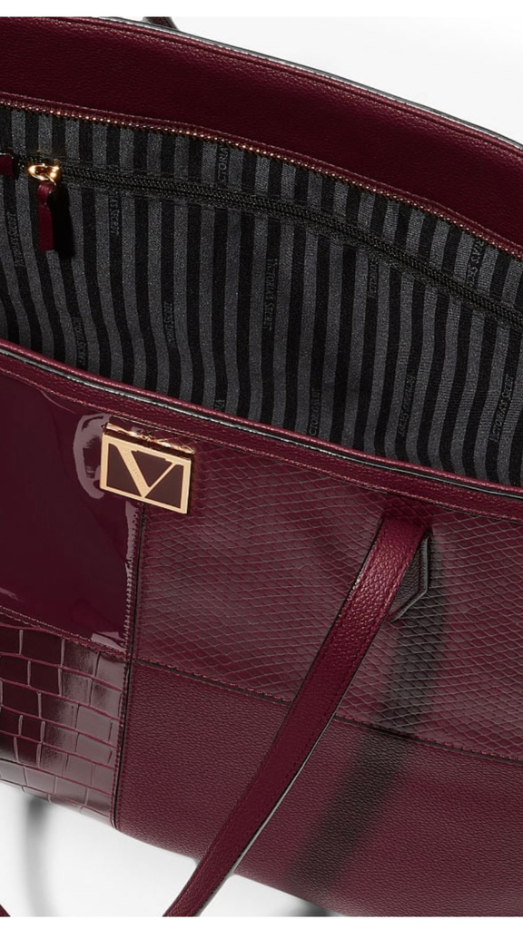 Sua bolsa para levar para qualquer lugar. Bordeaux Patchwork apresenta materiais mistos em acabamentos suaves, patenteados e Croc em relevo com nossa assinatura V-Monogram Hardware. Espaçoso o suficiente para todos os itens essenciais de viagem e muito mais.